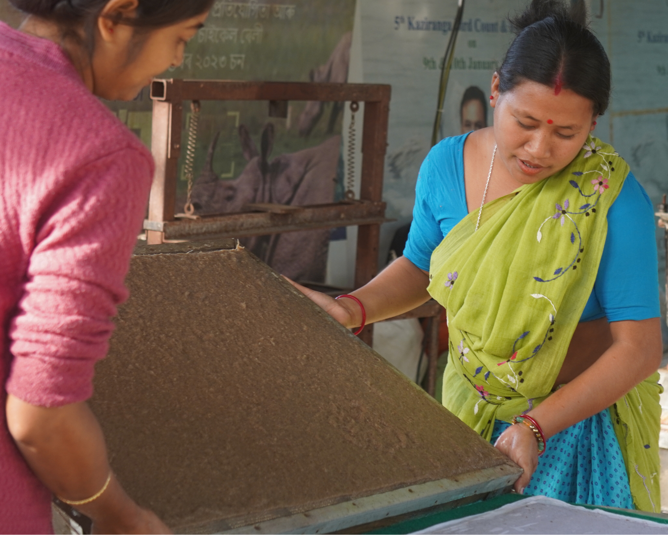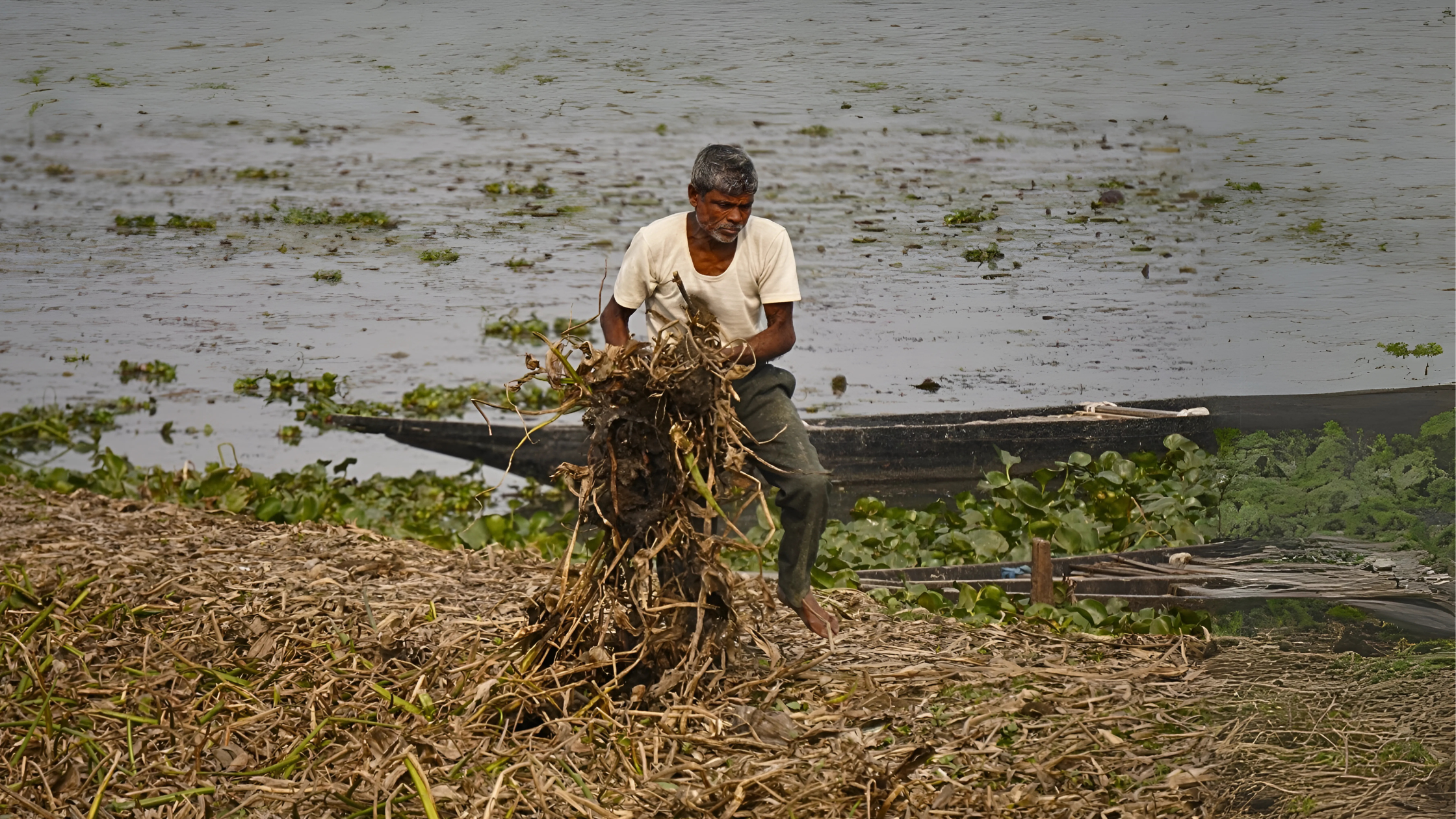 In a lakeside village overrun by water hyacinth, the invasive plant threatened both the wetlands and the livelihoods of the farming community. To address this, we introduced a sustainable approach where farmers hand-collect the plant, earning additional income while ensuring aquatic and reptile species, often harmed by machines like JCBs, remain safe. The carefully harvested hyacinth is then transformed into eco-friendly handmade paper, turning a destructive weed into a source of beauty and purpose. This process not only restores the wetlands but also empowers the community with meaningful, sustainable livelihoods.