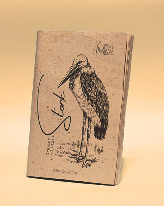 "Greater Adjutant Stork Print", Plain Journal, Handmade From Water Hyacinth