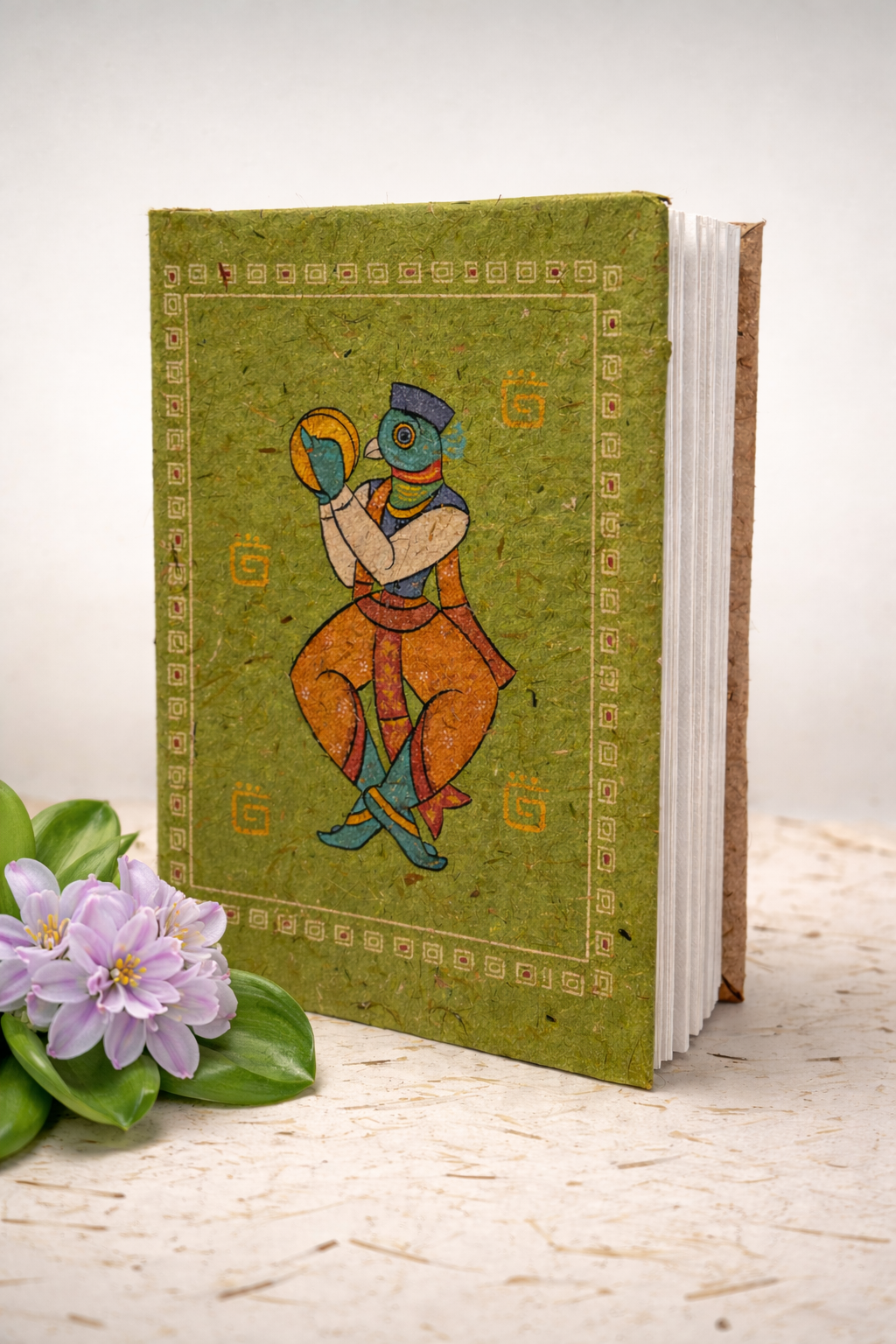The Hardcover Notebook is made from water hyacinth, an invasive plant that is creatively repurposed to create sustainable and eco-friendly paper products. The pages of the notebook are also made from water hyacinth paper, giving it a unique and environmentally friendly touch.