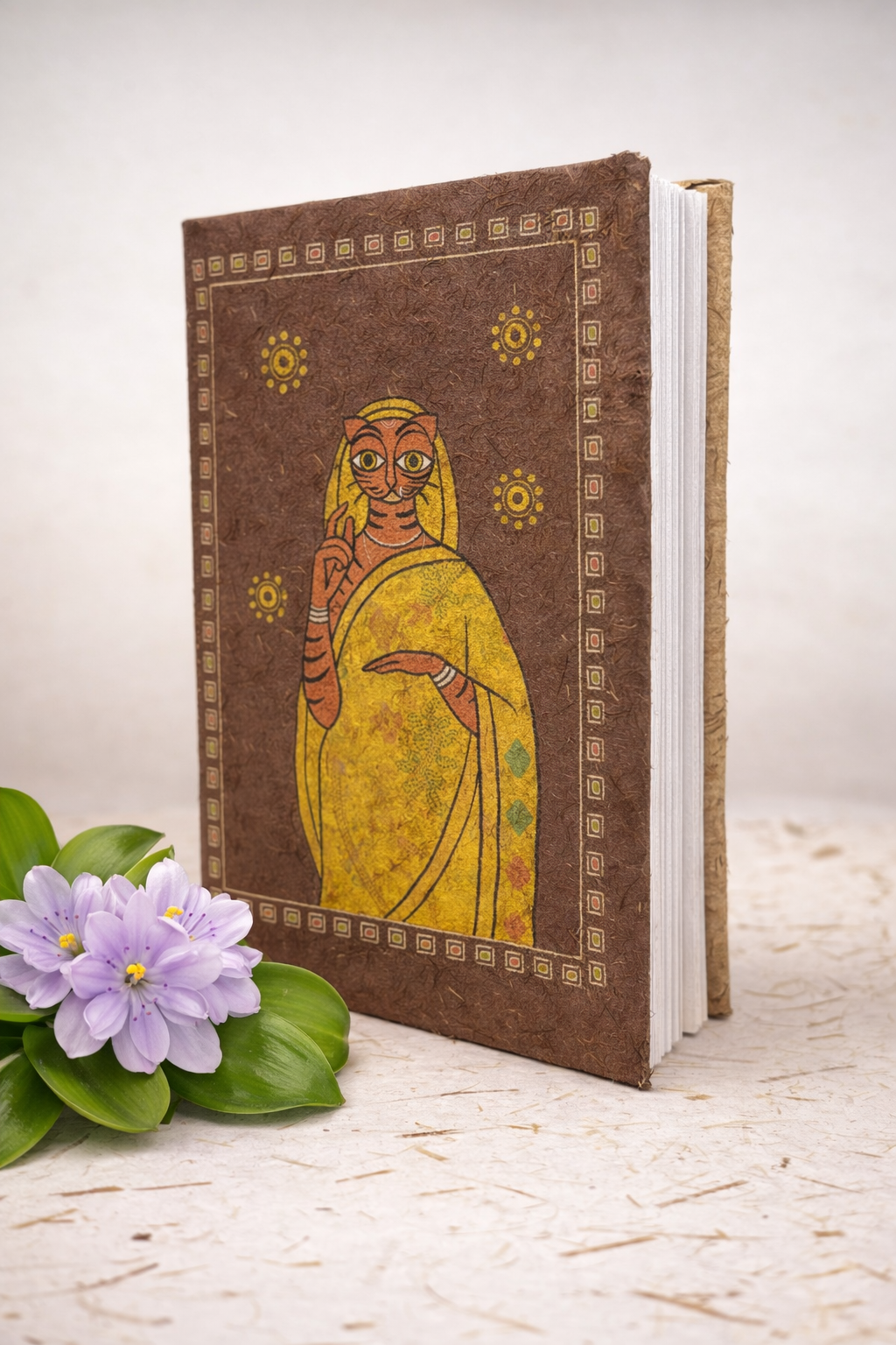 The Hardcover Notebook is made from water hyacinth, an invasive plant that is creatively repurposed to create sustainable and eco-friendly paper products. The pages of the notebook are also made from water hyacinth paper, giving it a unique and environmentally friendly touch.